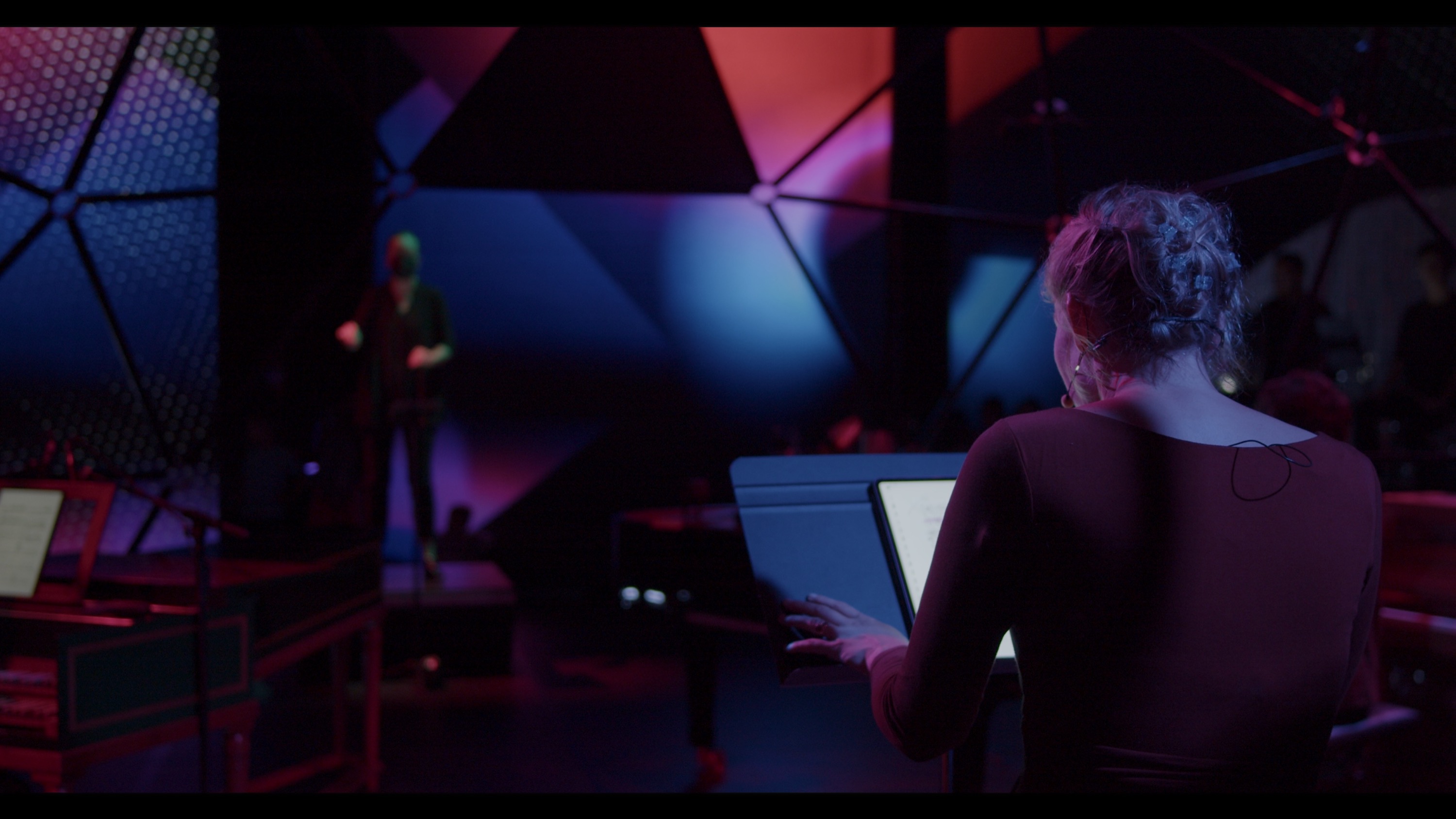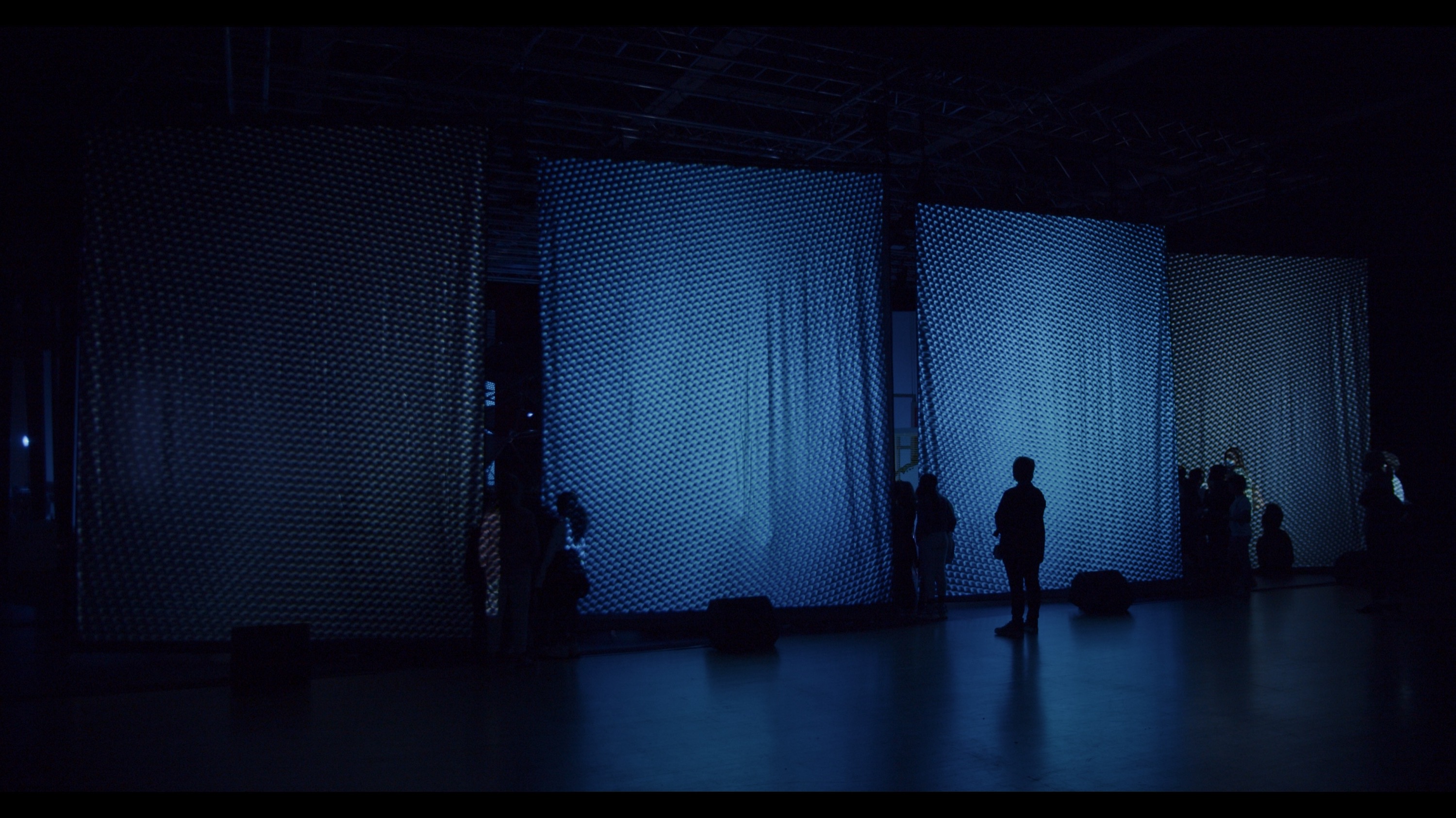 At the beginning of the performance, visitors find themselves in front of 4 huge projection screens that seem like the installation’s outer skin. From the inside they can already hear the first sounds of 'Aventures'. Only after a while, they can enter the installation through the projections. Here they encounter the musicians, apparatuses and the scenographic set.