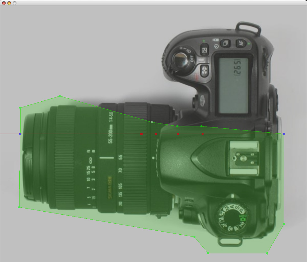 The person wanting to make a wrap with BOXED takes two photographs of the gift, from two orthogonal perspectives. The two photographs are uploaded into the BOXED application and used as a background. While rotating back and forth between the background views, the user can easily draw a two-dimensional outline around the gift on the screen, by clicking in the image with the mouse and moving around handles that make the outline.